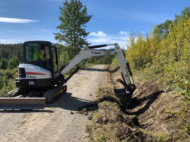 BCT sends out a huge thank you to Justin and Mackenzie at Walsh Equipment for donating an excavator (and a qualified operator) to complete trenching work along Mountain Road and Moose Connector. The trenching will divert water run off along these trails, alleviating wet and/or icy tread. The excavator, operated by volunteer Seth Ryder, saved many hours of manual labour. Thanks Walsh Equipment for the donation!
