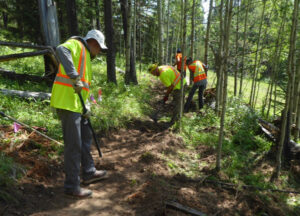 Volunteers work on a section of trail in West Bragg Creek. Alf Skrastins photo
